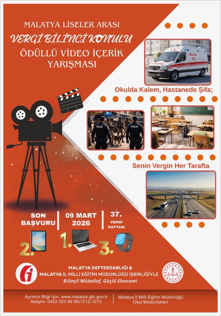 Malatya genelindeki tüm lise öğrencilerine açık olan yarışmada, gençler hazırlayacakları videolarla verginin günlük hayatla olan bağını kendi perspektiflerinden anlatacak. Dijital üretime ilgi duyan öğrencilerin yeteneklerini sergileyebileceği organizasyonun, gençlerin iletişim ve medya okuryazarlığı becerilerine de katkı sunması bekleniyor.