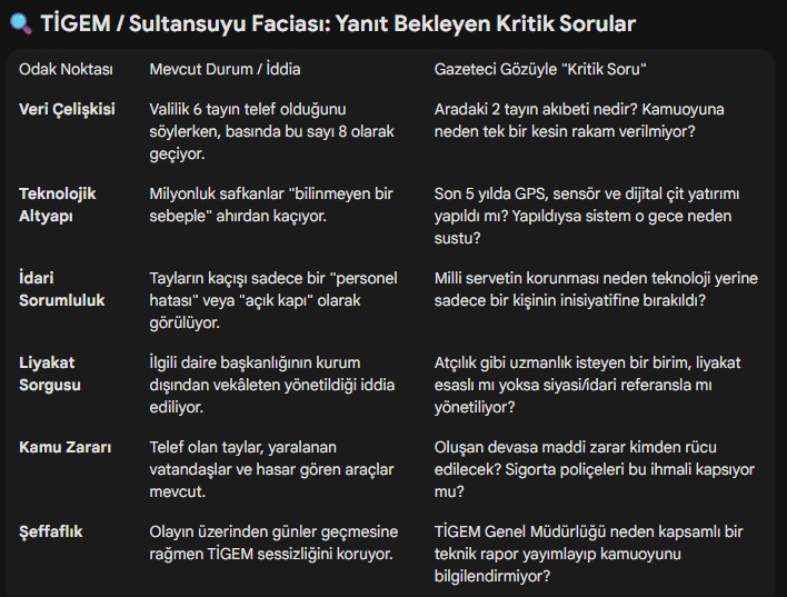 Valilik açıklamasına göre 6, basın iddialarına göre ise 8 tay telef oldu. Aradaki 2 taylık fark, TİGEM’in şeffaflık politikasındaki ilk çatlağı oluşturuyor. Eğer devletin kayıtlarındaki rakamlar ile sahadaki gerçeklik örtüşmüyorsa, envanter yönetimi konusunda ciddi bir denetim boşluğu var demektir. Bakanlığın bu konuda “kesin” bir rakam verememesi, kamuoyundaki “bilgi mi saklanıyor?” şüphesini körüklüyor.